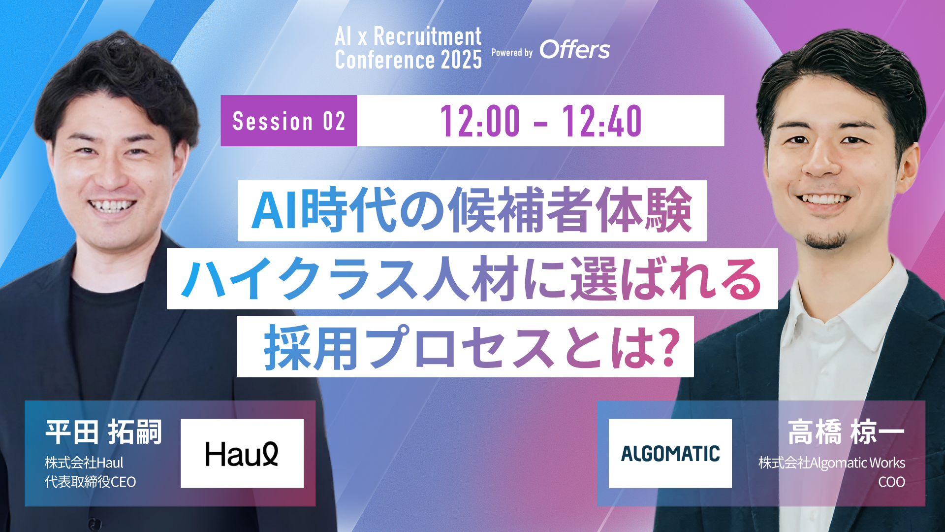 Session②:採用活動「AI時代の候補者体験 ─ハイクラス人材に選ばれる“採用プロセス”とは?」|12:00 – 12:40